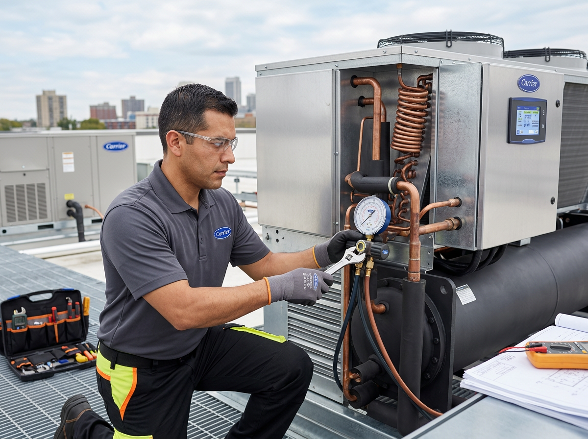 Carrier has pioneered intelligent climate and energy solutions for over 100 years, enabling modern living, working, and growth globally. We develop connected ecosystems that serve residential, commercial, and cold chain industries with a focus on sustainability and innovation. Led by Chairman & CEO David Gitlin, we continue to advance climate technology through recent innovations like the AquaEdge® 30CF Chiller and trademarked solutions including Puron Advance and InteliSense Technology. Our extensive partner network and training programs ensure expert installation and service worldwide.